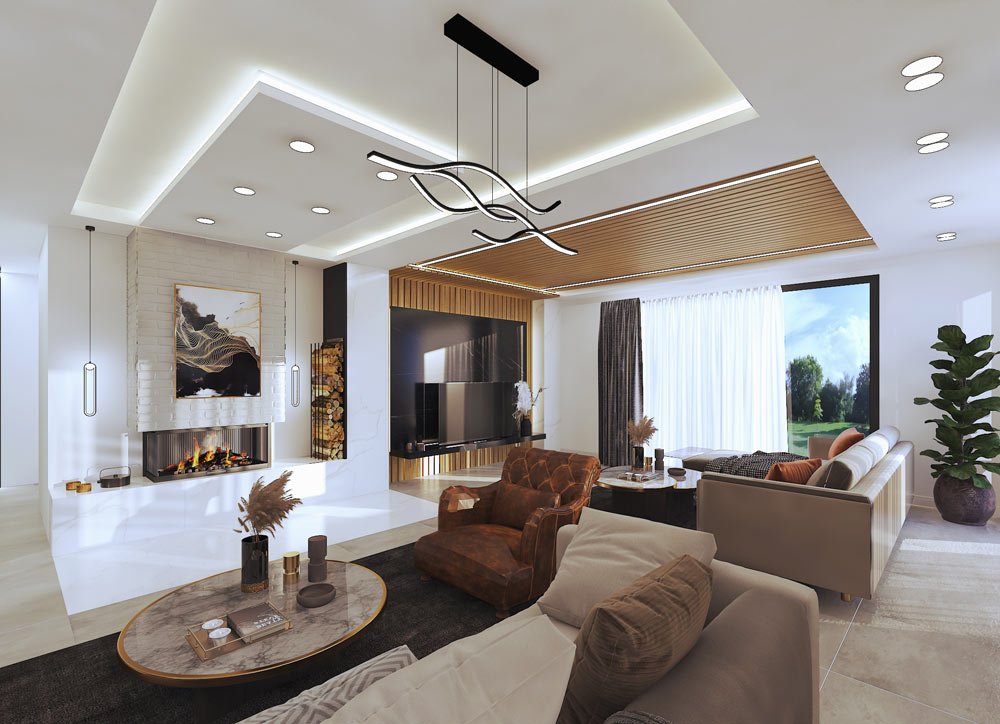 برای افزودن جلوه به داخل خانه، از تضاد میان رنگهای تاریک و روشن استفاده کنید. به عنوان مثال، اگر دیوارها رنگ تیرهای داشته باشند، از رنگهای روشن برای مبلمان و لوازم دیگر استفاده کنید.